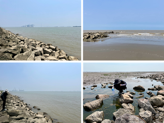 研究者在长江(左)与黄海沿岸(右)进行eDNA样品采集。