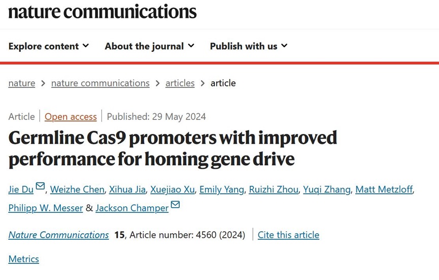 冰球突破mg正规官网博士后杜捷为本论文的第一作者, Jackson Champer研究员和杜捷为论文的通讯作者。2022级清华大学PTN项目博士生陈为哲、科研助理贾熙华、博士后徐雪娇、实习生周睿知、2021级冰球突破mg正规官网本科生张雨琪、康奈尔大学本科生Emily Yang和Matt Metzloff,康奈尔大学助理教授Philipp W. Messer等多位成员对本论文有着重要贡献。该研究得到了冰球突破mg正规官网、生命科学联合中心、国家自然科学基金、冰球突破mg正规官网启东创新基金、美国国立卫生研究院奖等机构和经费的大力支持。