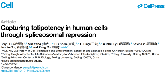3.Shen, H., Yang, M., Li, S., Zhang, J., Peng, B., Wang, C., Chang, Z., Ong, J., and Du, P. (2021). Mouse totipotent stem cells captured and maintained through spliceosomal repression. Cell 184, 2843-2859 e2820.