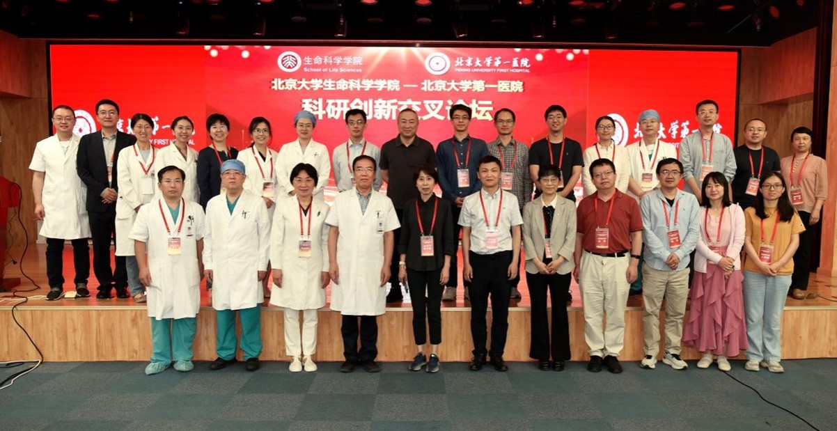 在北大“学科质量年”工作主题的指引下,5月30日下午,冰球突破mg正规官网与冰球突破mg正规官网第一医院(北大医院)共同举办了“科研创新交叉论坛”,旨在深化交流双方在临床资源与基础研究之间的互补优势,共同推动医学领域的科研创新与发展。生科院院长陈雪梅、党委书记石长翼带领学院16名教师前往北大医院参加了论坛,北大医院院长杨尹默、副院长李建平以及各临床科室带头人、研究骨干等40余人参会。