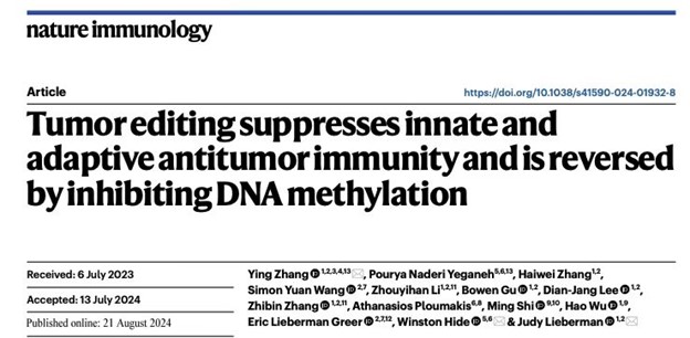 综上,该研究详细刻画了早期乳腺癌中的肿瘤编辑进程,揭示了肿瘤编辑对关键先天免疫途径的优先抑制及其在调控肿瘤免疫原性中的重要性,阐释了DNA甲基化在肿瘤免疫编辑中发挥的关键作用并证明了通过DAC抑制DNA甲基化的抗癌潜能及作用机理。该研究提示,通过靶向性地表观遗传调控提升肿瘤中关键先天免疫途径的活性有潜力促进肿瘤由“冷”转“热”,为提升抗肿瘤免疫力及开发高效免疫治疗新策略提供了新思路。