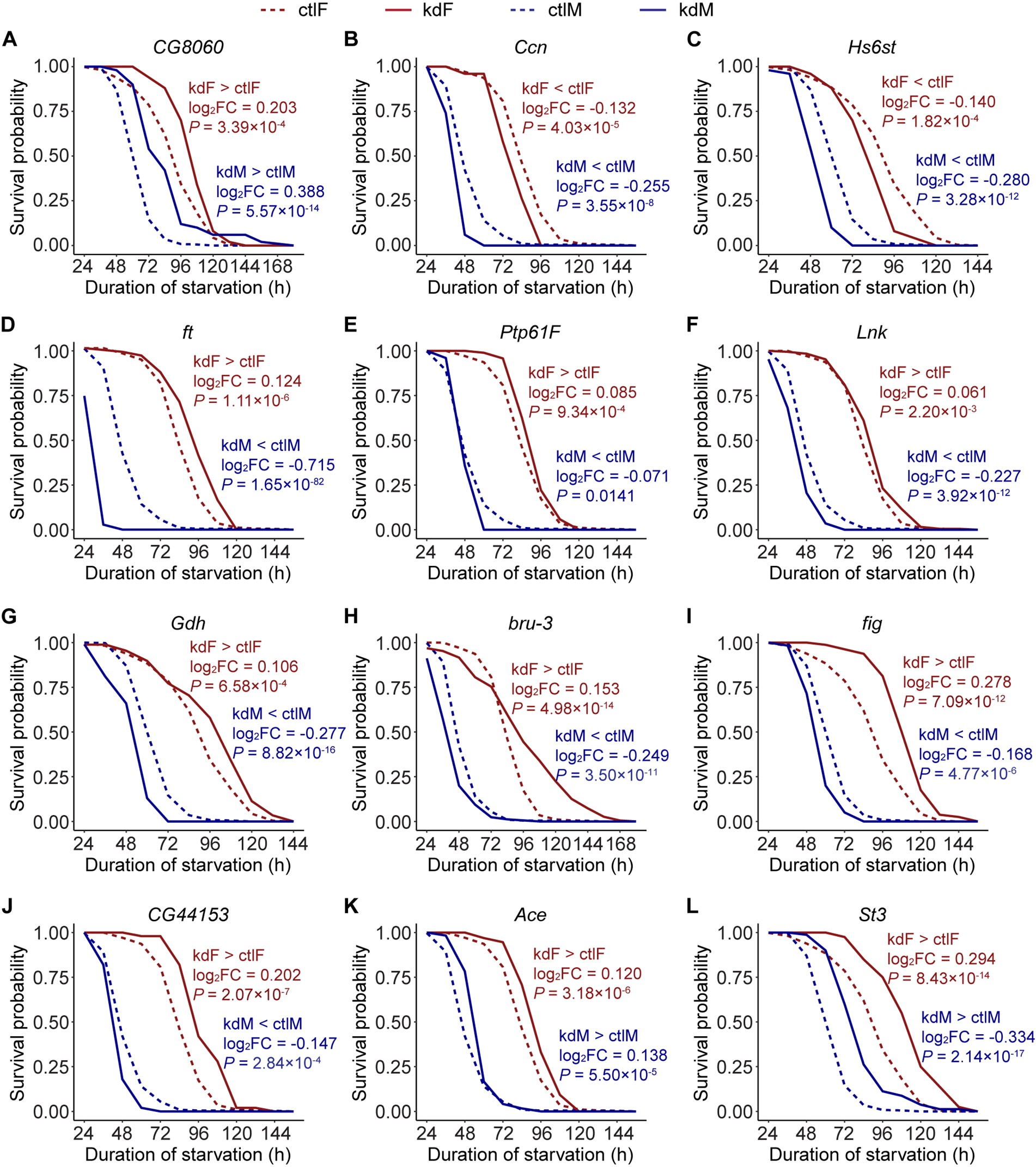 综上所述,该研究系统揭示了黑腹果蝇饥饿耐受的多基因微效遗传架构,并通过大规模RNA干扰与表型分析,首次量化了性别依赖效应在该性状相关基因中的广泛存在。该研究成果为理解适合度相关性状的基因型-表型关联、以及遗传背景、性别差异与基因多效性在性状演化中的作用提供了新视角。