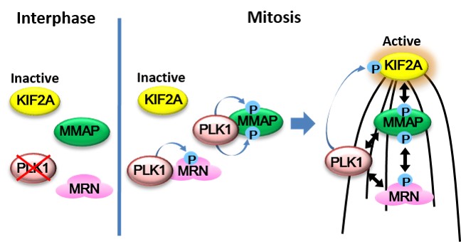 图一:MMAP和MRN特异地在mitosis时期形成复合物,招募PLK1至KIF2A,促进纺锤体动态和染色体正常分离。