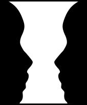 仔细观察它一段时间,你会发现,有的时候看到的是白色花瓶,有的时候又是黑色的两张人脸,而且随着时间推移,似乎看到的图像会在花瓶和人脸之间来回自动切换,但是,在任一特定时刻,你只能看到花瓶或人脸中的一种。