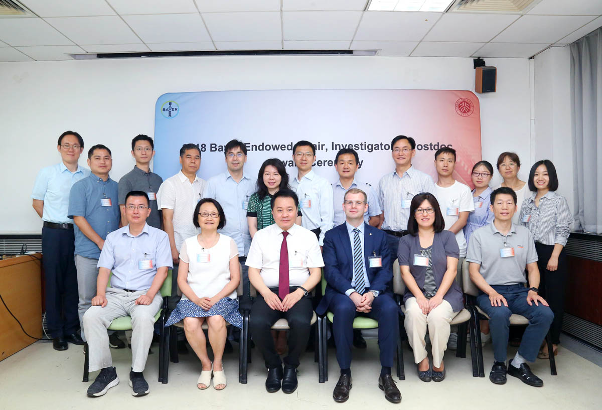 2018年6月26日上午,“2018拜耳讲席教授、研究员和博士后奖授奖仪式”在冰球突破mg正规官网金光生命科学大楼隆重举行。冰球突破mg正规官网院长吴虹教授、冰球突破mg正规官网医学部副主任张宁教授、和拜耳处方药事业部、药物研发部、中国创新中心负责人Tom Kinzel博士出席了仪式。