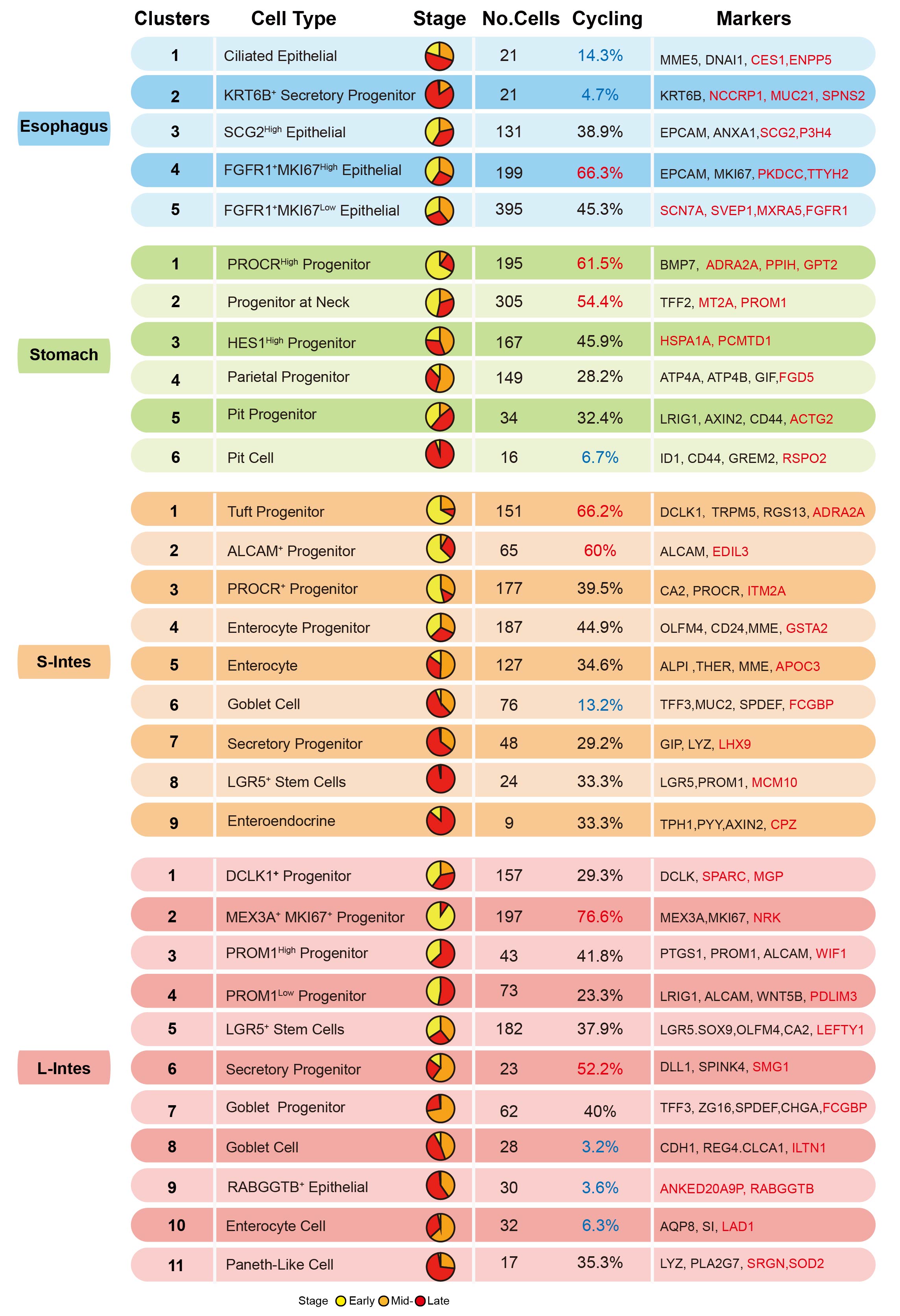 人类胚胎发育过程中食道、胃、小肠、大肠的细胞类型图谱及其关键生物学特征