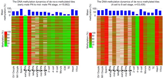 图二.人类早期胚胎发育过程中两次DNA从头加甲基化区域的甲基化水平动态变化