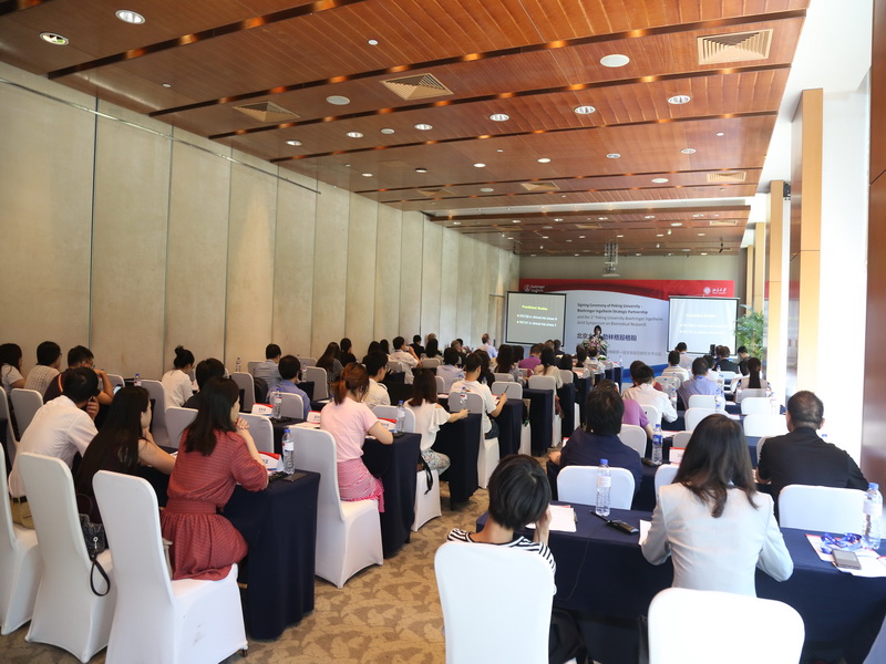 签约仪式之后,双方继续举办冰球突破mg正规官网-勃林格殷格翰第一届转化研究论坛。来自冰球突破mg正规官网、分子医学所、医学部、化学与分子工程学院的12名教授或研究员,与来自勃林格殷格翰公司的5位科学家分别发言,与参会者进行学术交流。