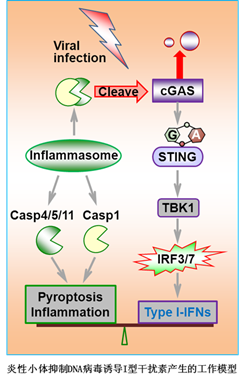 已有的研究表明,I型干扰素能够负调控炎性小体通路。在临床上I型干扰素已经用于治疗由炎性小体过度激活引发的多发性硬化症和Behcet综合征。上述研究成果发现炎性小体有效抑制I型干扰素的产生,揭示了天然免疫信号通路间双重反馈、相互制约的精密调节,为天然免疫稳态维持及自身免疫疾病的治疗提出强有力的理论依据。